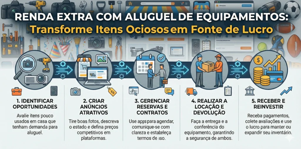 Criar uma renda extra alugando equipamentos é uma forma inteligente de ganhar dinheiro usando algo que já está parado.Muitas pessoas
