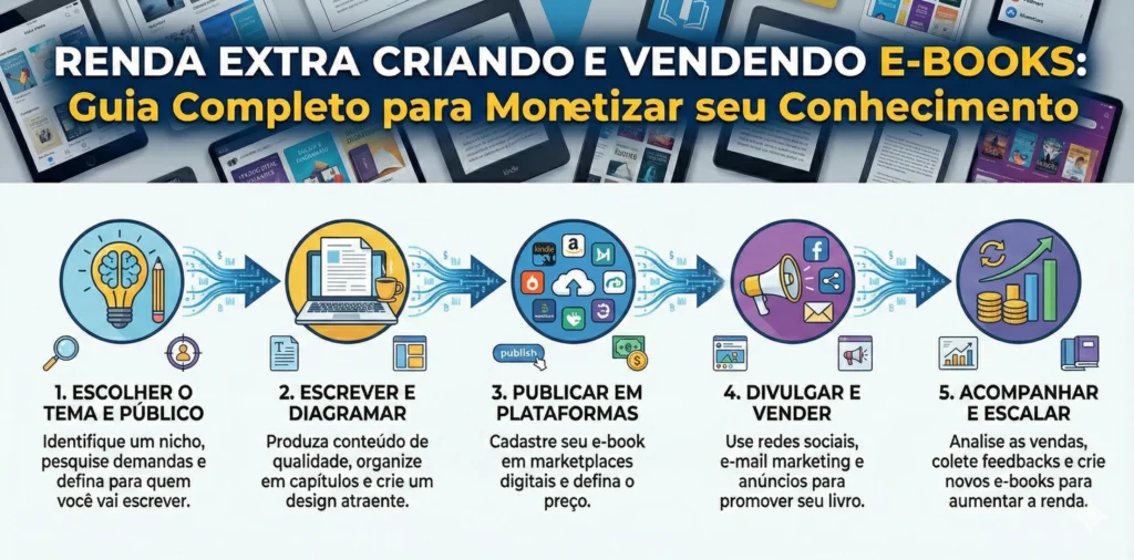 Criar uma renda extra vendendo e-books é uma das formas mais inteligentes de monetizar conhecimento.Você transforma experiência em produto digital