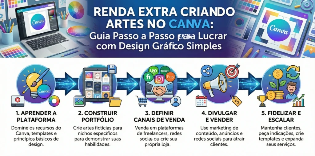 Criar uma renda extra usando o Canva é uma das formas mais simples de começar no mercado digital.Você não precisa